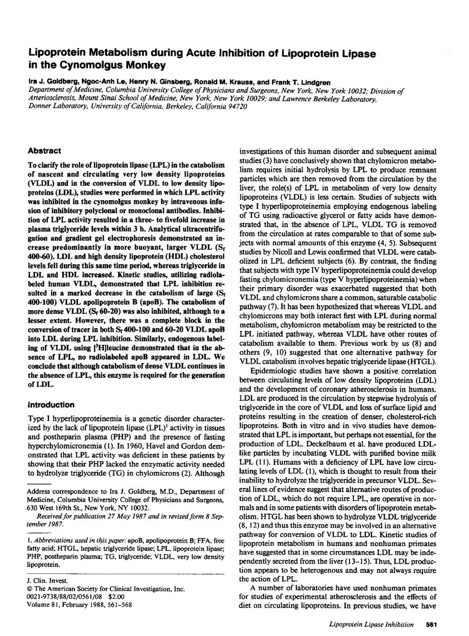 I J Goldberg, N A Le, H N Ginsberg, R M Krauss, F T Lindgren