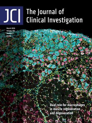 Yin et al. report that a macrophage subset expressing activin A facilitates muscle regeneration by acting on satellite cells but contributes to heterotopic ossification in pathological settings such as fibrodysplasia ossificans progressiva. The cover image shows injured skeletal muscle sections immunostained with anti–mouse embryonic myosin heavy chain (eMyHC) (magenta), marking regenerating muscle fibers; mouse IgG (light blue), indicating necrotic fibers; and Hoechst (yellow), labeling nuclei. Image credit: Wenqiang Yin, Kazuo Okamoto, and Hiroshi Takayanagi.