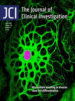 Konishi et al. report a unique thick microtubule bundle organization that is required to generate expansive and thin cell morphology during alveolar type 2 cell differentiation into alveolar type 1 cells. The cover image shows cultured lung pneumocyte type 1 cells with staining for acetylated tubulin (green) and nuclei (magenta). Image credit: Aleksandra Tata.