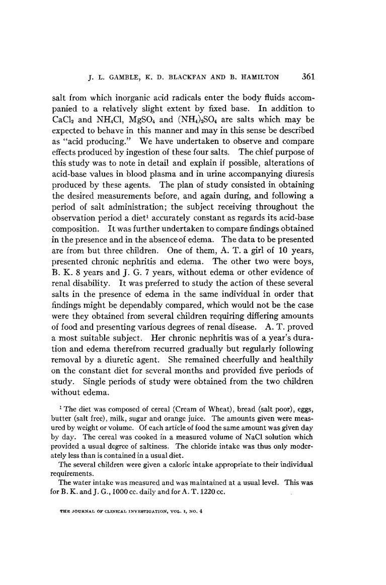 A STUDY OF THE DIURETIC ACTION OF ACID PRODUCING SALTS
