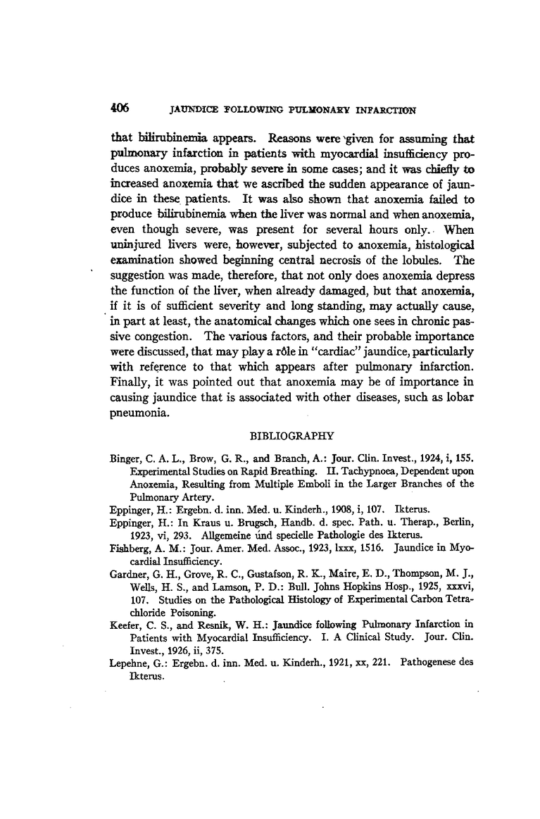 JAUNDICE FOLLOWING PULMONARY INFARCTION IN PATIENTS WITH MYOCARDIAL INSUFFICIENCY: