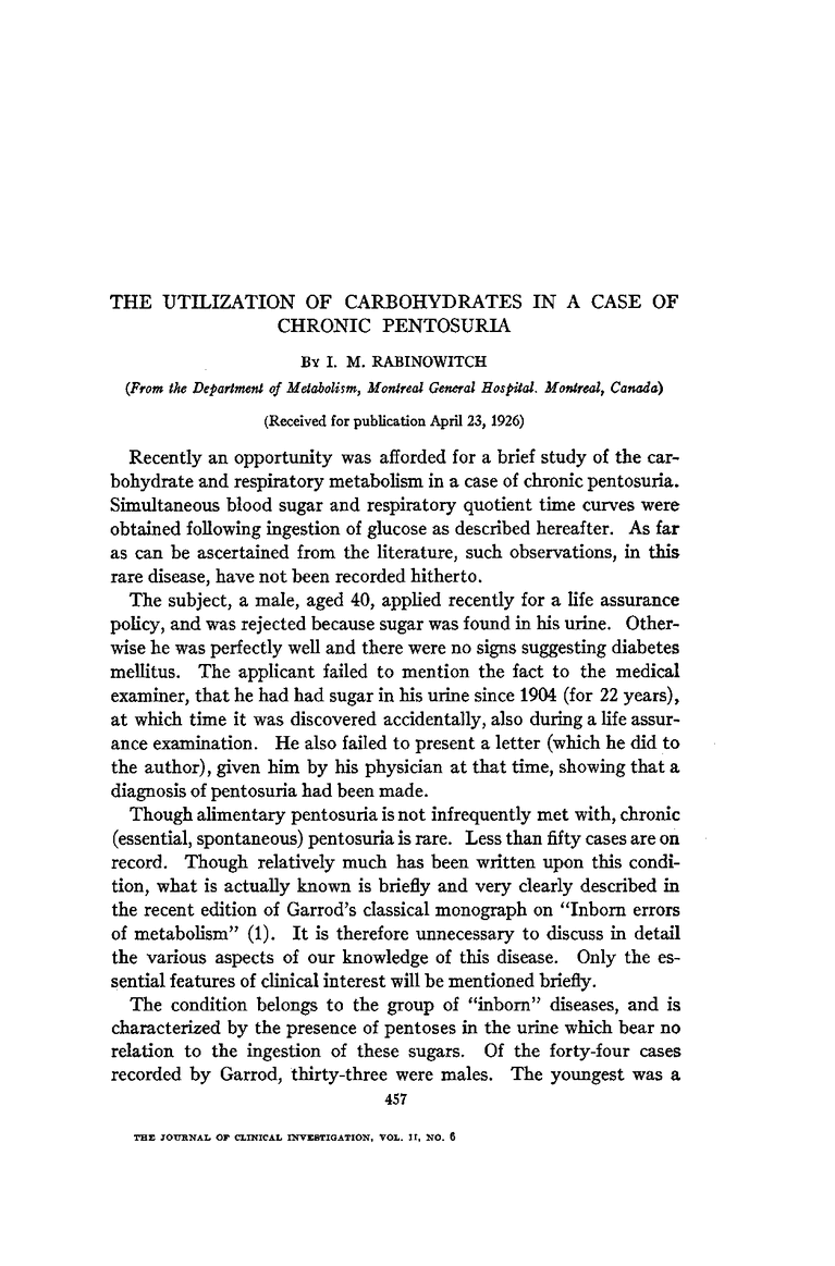 THE UTILIZATION OF CARBOHYDRATES IN A CASE OF CHRONIC PENTOSURIA