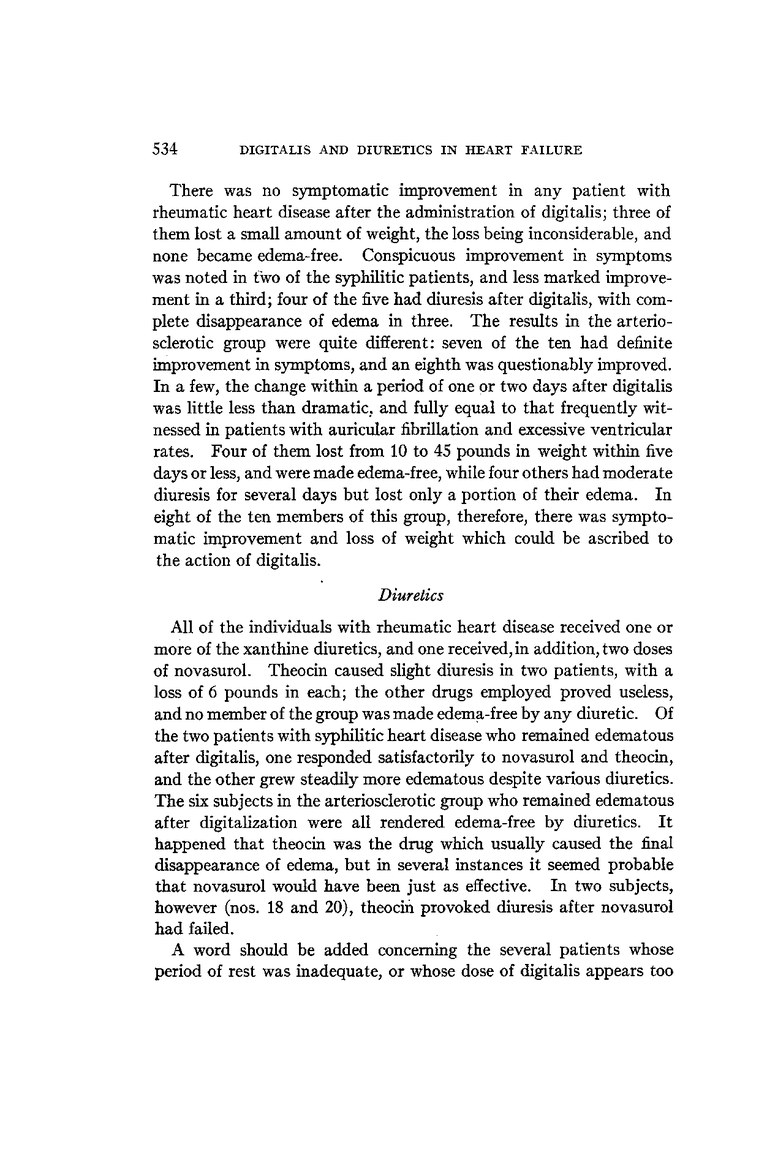 DIGITALIS AND DIURETICS IN HEART FAILURE WITH REGULAR RHYTHM, WITH ESPECIAL REFERENCE TO THE IMPORTANCE OF ETIOLOGIC CLASSIFICATION OF HEART DISEASE