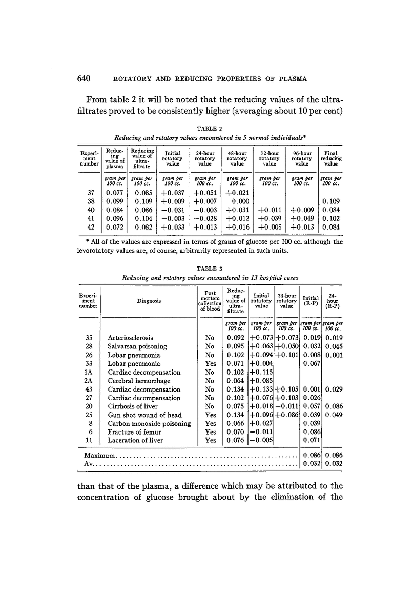 A COMPARATIVE STUDY OF THE ROTATORY AND REDUCING PROPERTIES OF ULTRAFILTRATES FROM BLOOD PLASMA