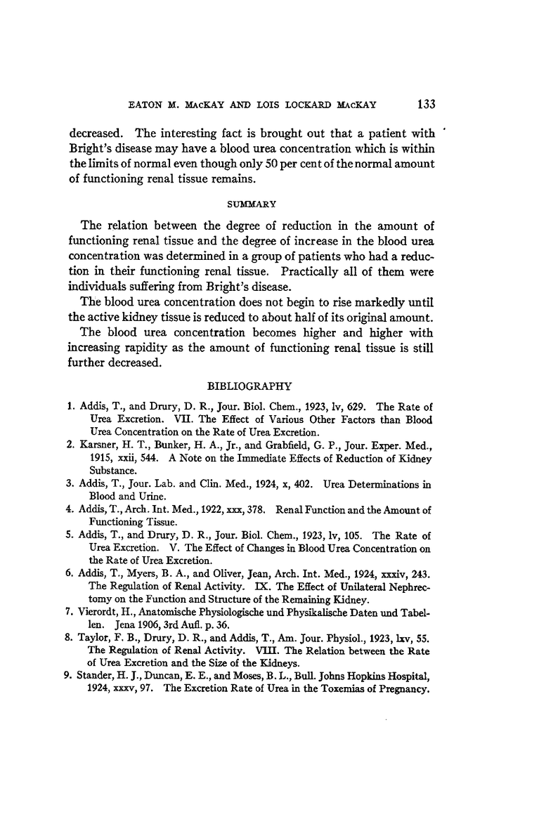 THE RELATION BETWEEN THE BLOOD UREA CONCENTRATION AND THE AMOUNT OF FUNCTIONING RENAL TISSUE