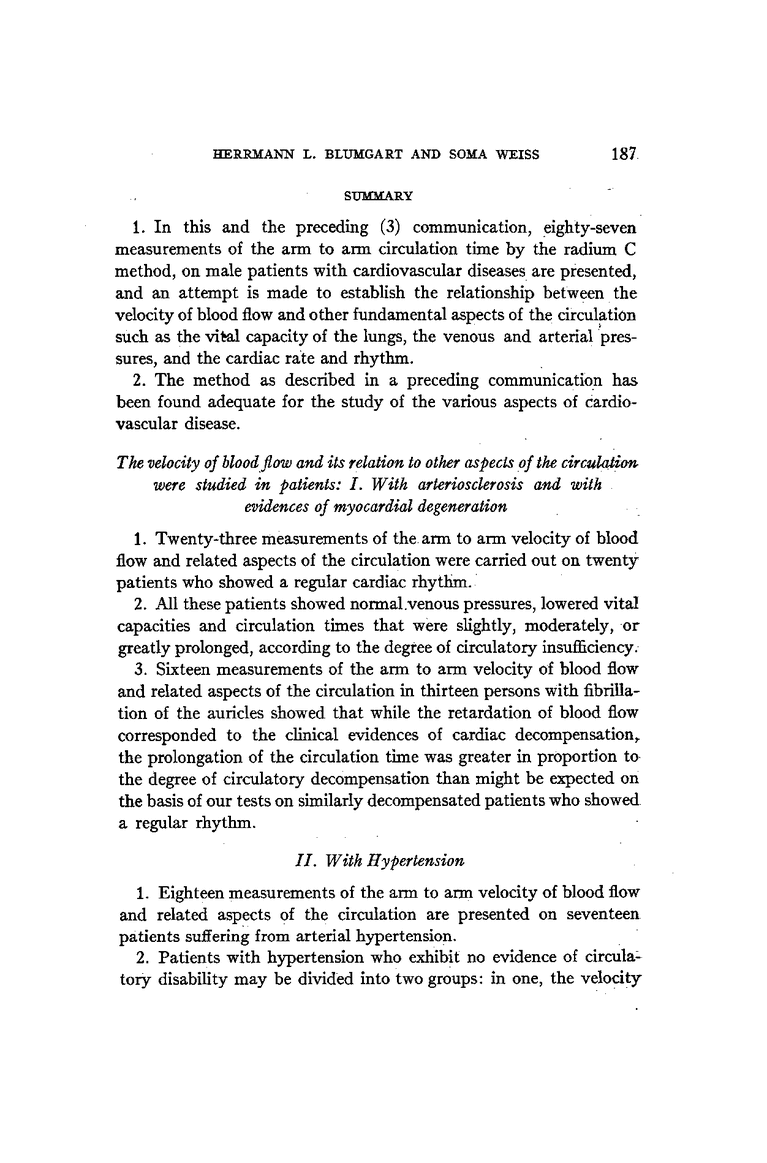 STUDIES ON THE VELOCITY OF BLOOD FLOW: