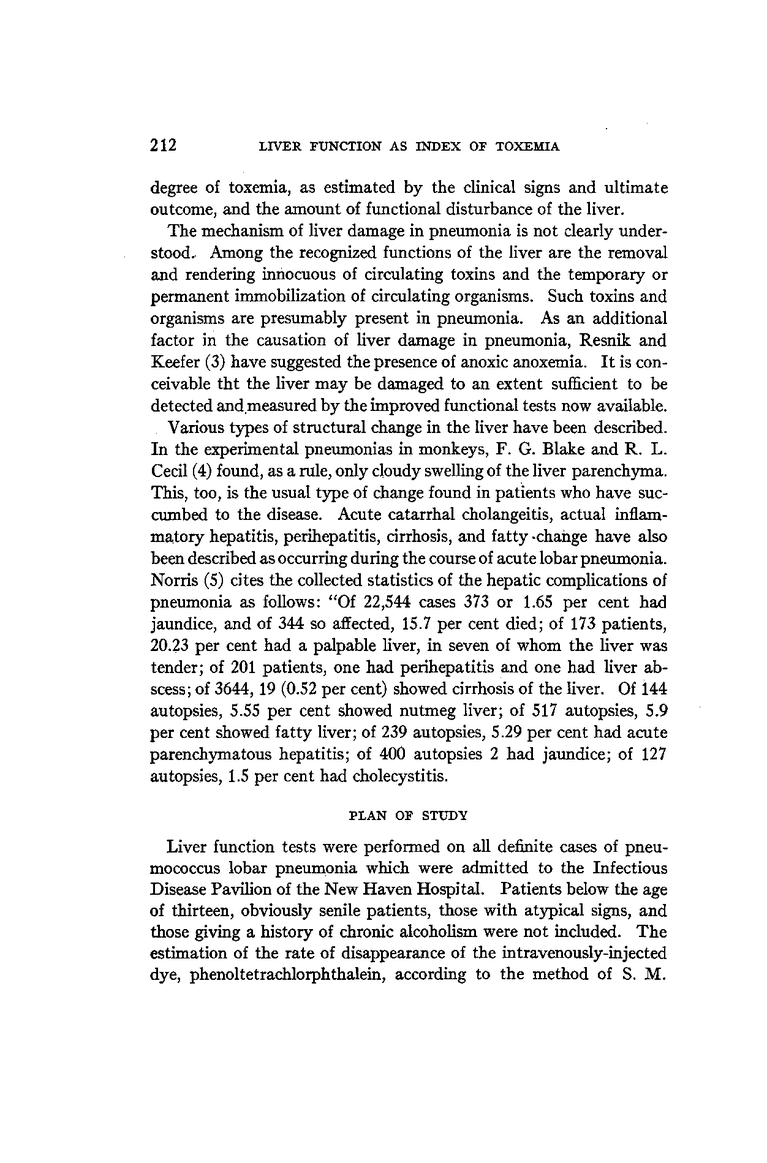 ALTERATIONS IN LIVER FUNCTION AS AN INDEX OF TOXEMIA IN PNEUMOCOCCUS LOBAR PNEUMONIA