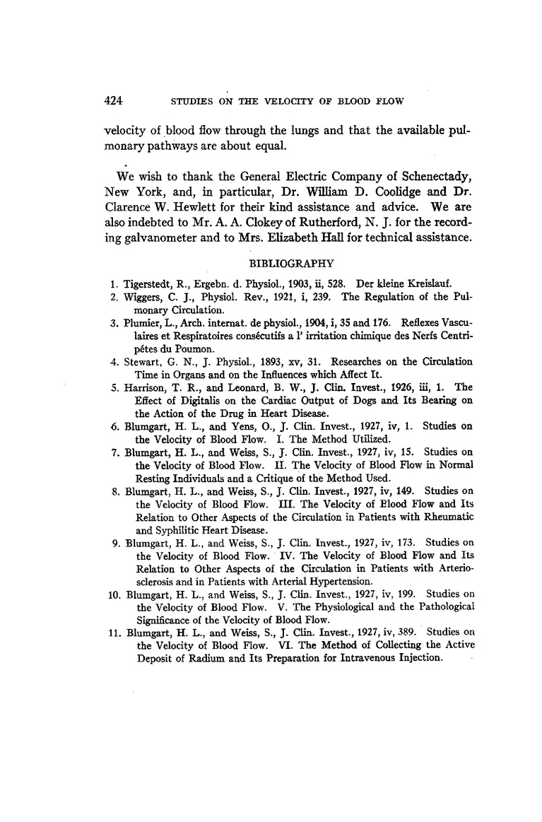 STUDIES ON THE VELOCITY OF BLOOD FLOW: