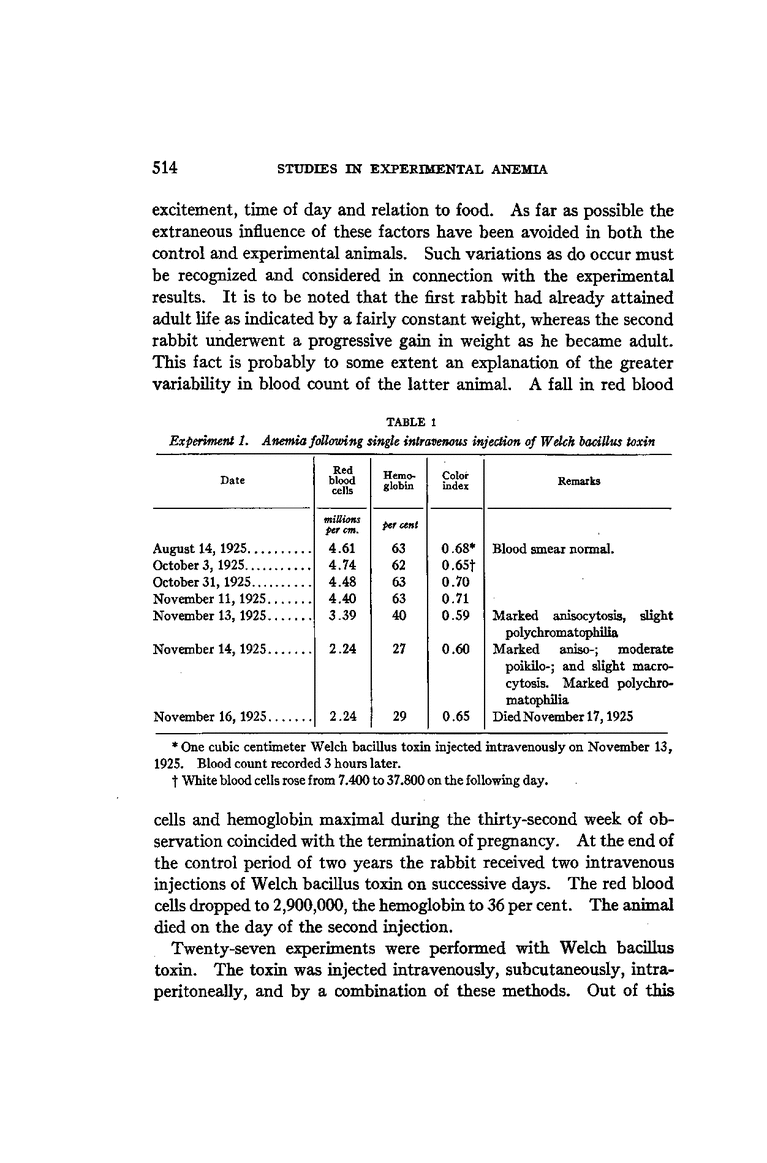 STUDIES IN EXPERIMENTAL ANEMIA: I. The Effects on Rabbits of the Injection of the Hemolytic Toxin of the Welch Bacillus