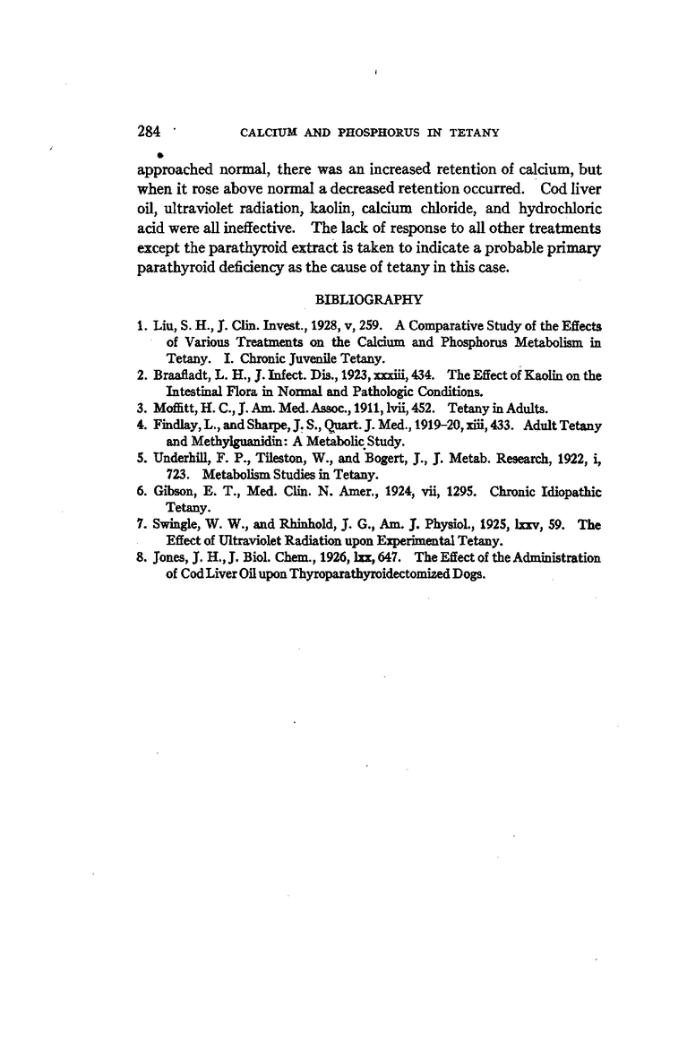 A COMPARATIVE STUDY OF THE EFFECTS OF VARIOUS TREATMENTS ON THE CALCIUM AND PHOSPHORUS METABOLISM IN TETANY:
