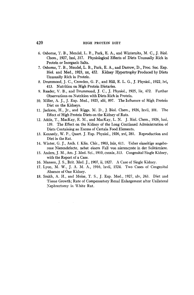 THE EFFECT OF HIGH PROTEIN DIETS ON THE REMAINING KIDNEY OF RATS