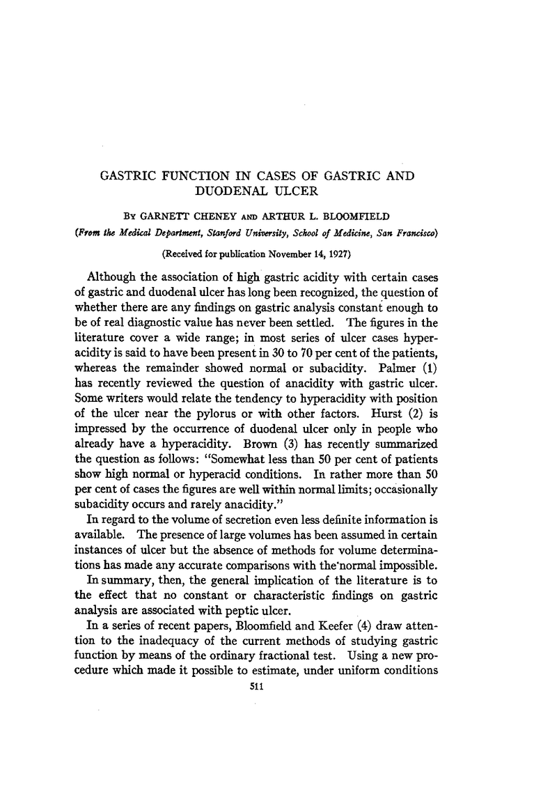 GASTRIC FUNCTION IN CASES OF GASTRIC AND DUODENAL ULCER