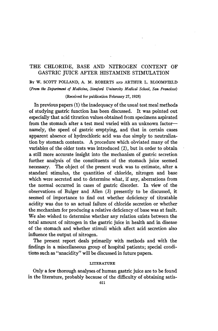 W. Scott Polland, … , A. M. Roberts, Arthur L. Bloomfield