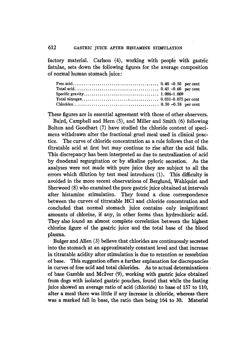 THE CHLORIDE, BASE AND NITROGEN CONTENT OF GASTRIC JUICE AFTER HISTAMINE STIMULATION