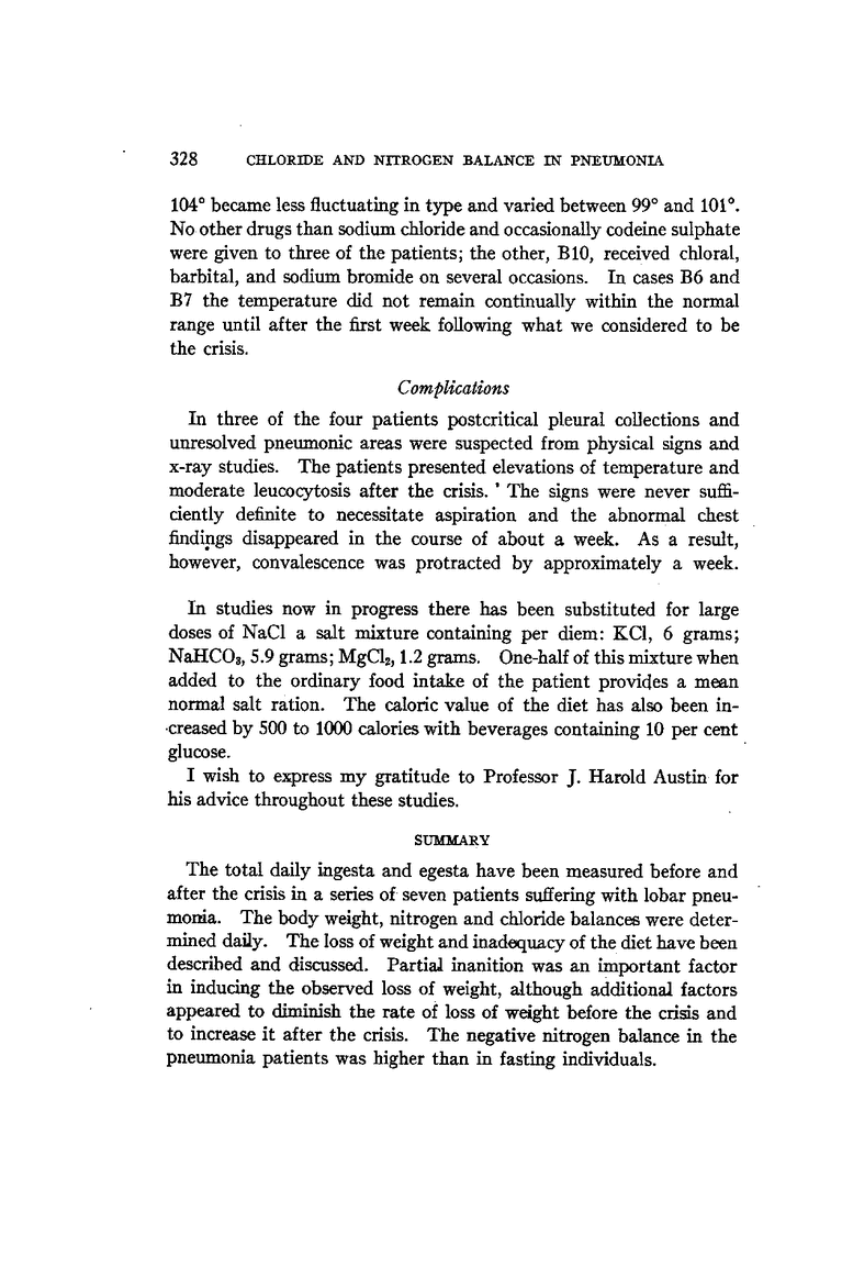 IV. The Chloride and Nitrogen Balances, and Weight Changes in Pneumonia