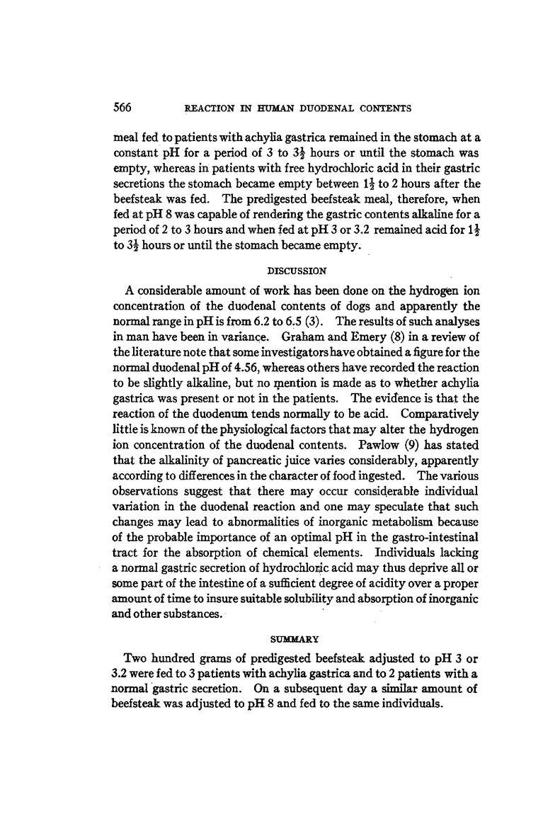 THE REACTION OF HUMAN DUODENAL CONTENTS TO ACID AND ALKALINE MEAT MIXTURES