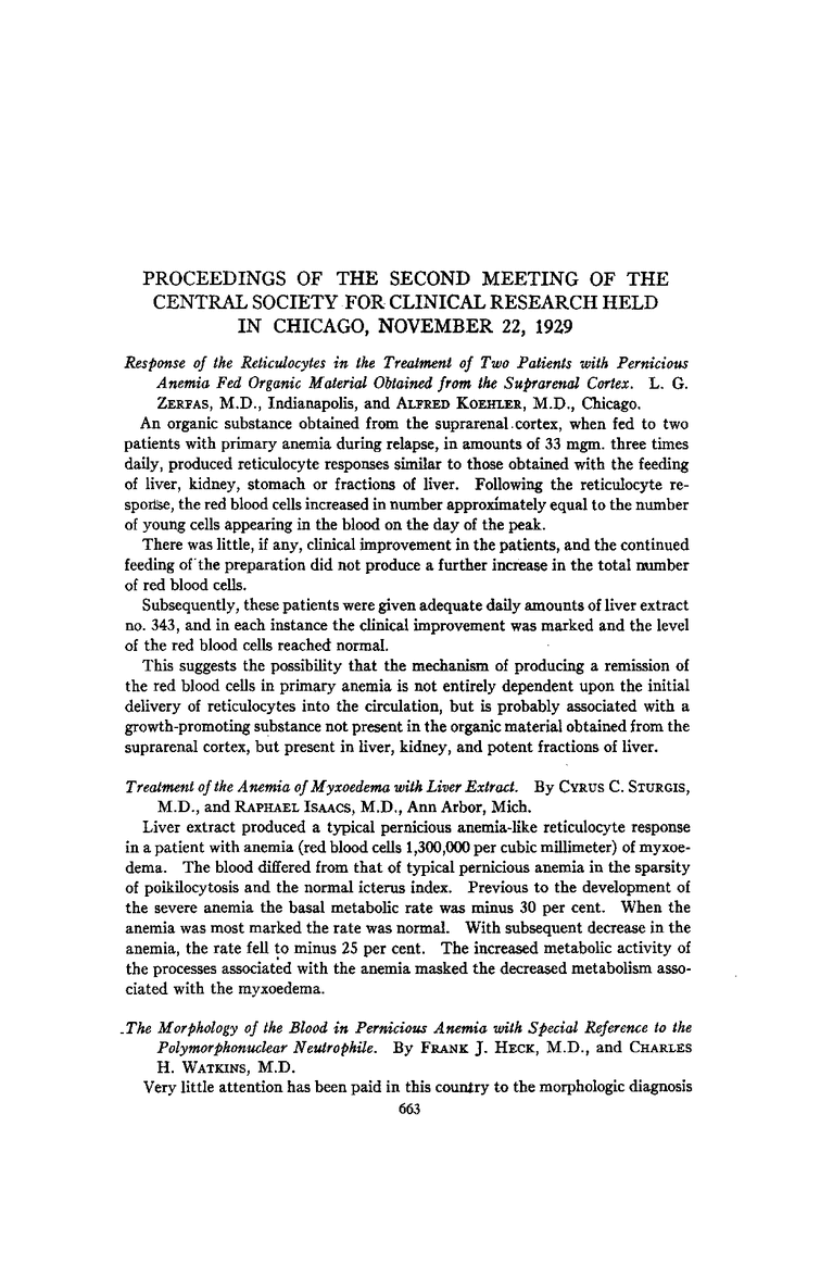 PROCEEDINGS OF THE SECOND MEETING OF THE CENTRAL SOCIETY FOR CLINICAL RESEARCH HELD IN CHICAGO, NOVEMBER 22, 1929