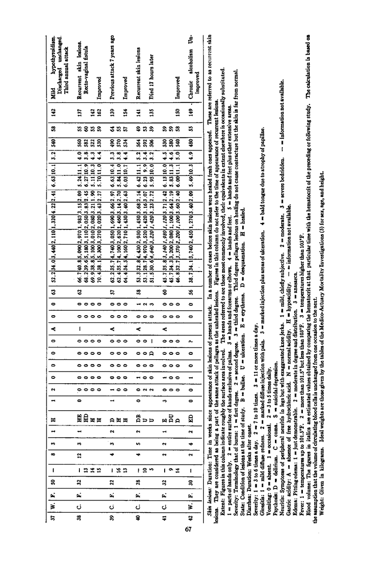 THE PATHOLOGIC PHYSIOLOGY OF PELLAGRA: I. Tabulated Clinical and Physiologic Data