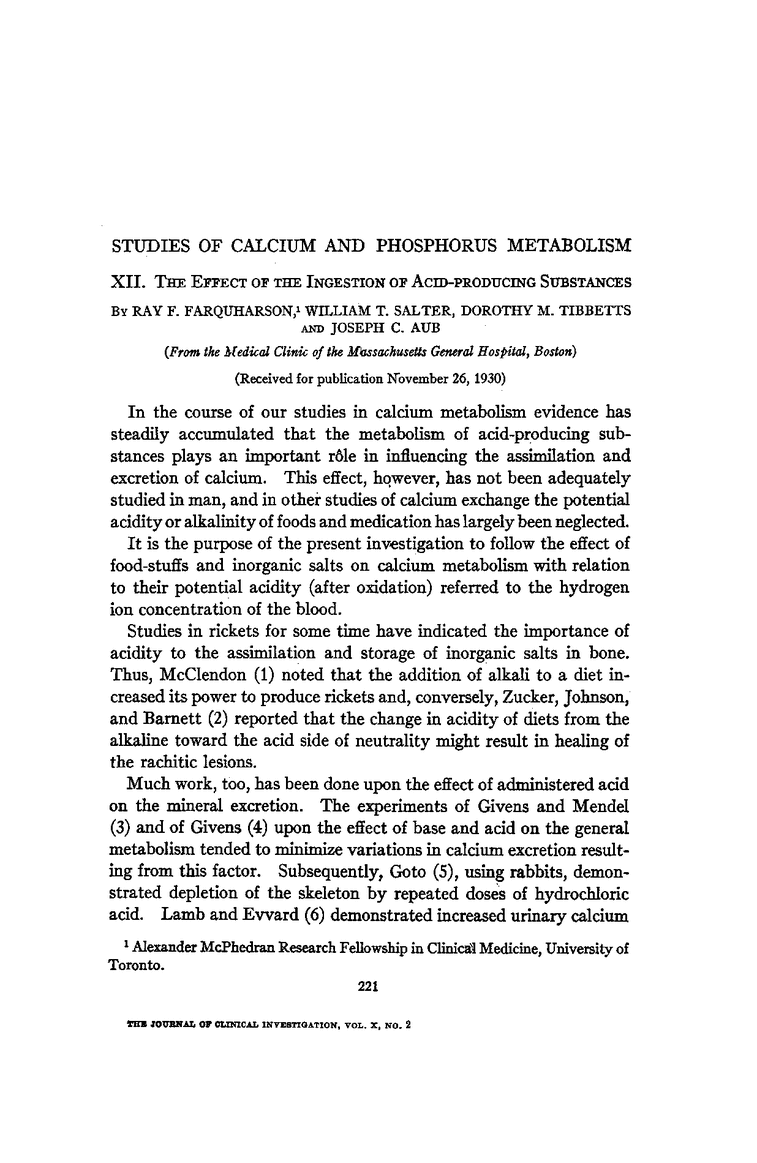 Ray F. Farquharson, … , Dorothy M. Tibbetts, Joseph C. Aub