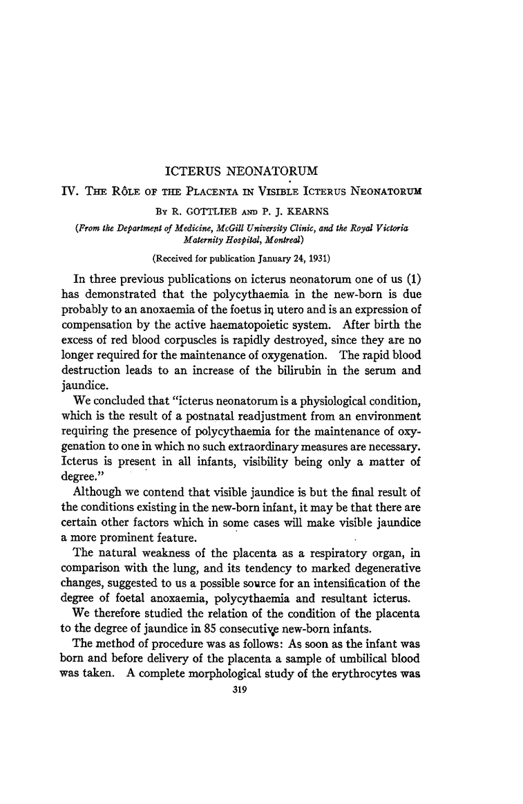 IV. The Rôle of the Placenta in Visible Icterus Neonatorum