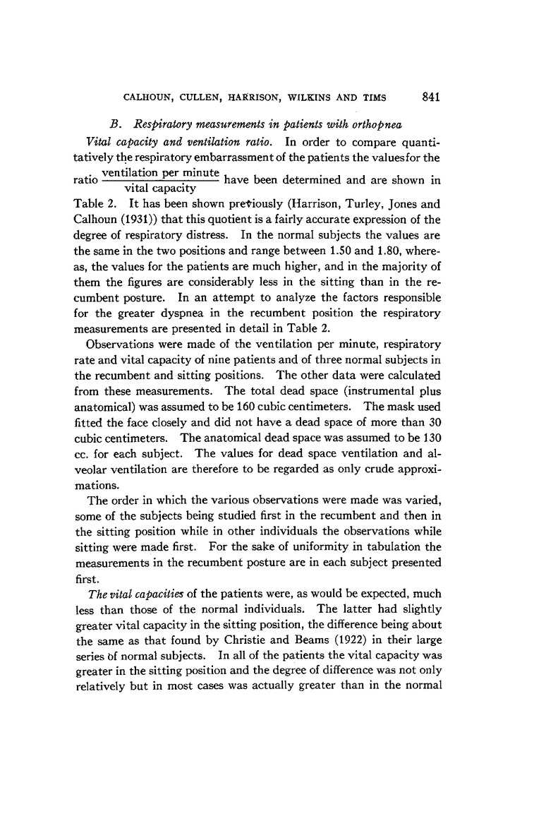 XIV. Orthopnea: Its Relation to Ventilation, Vital Capacity, Oxygen Saturation and Acid-Base Condition of Arterial and Jugular Blood