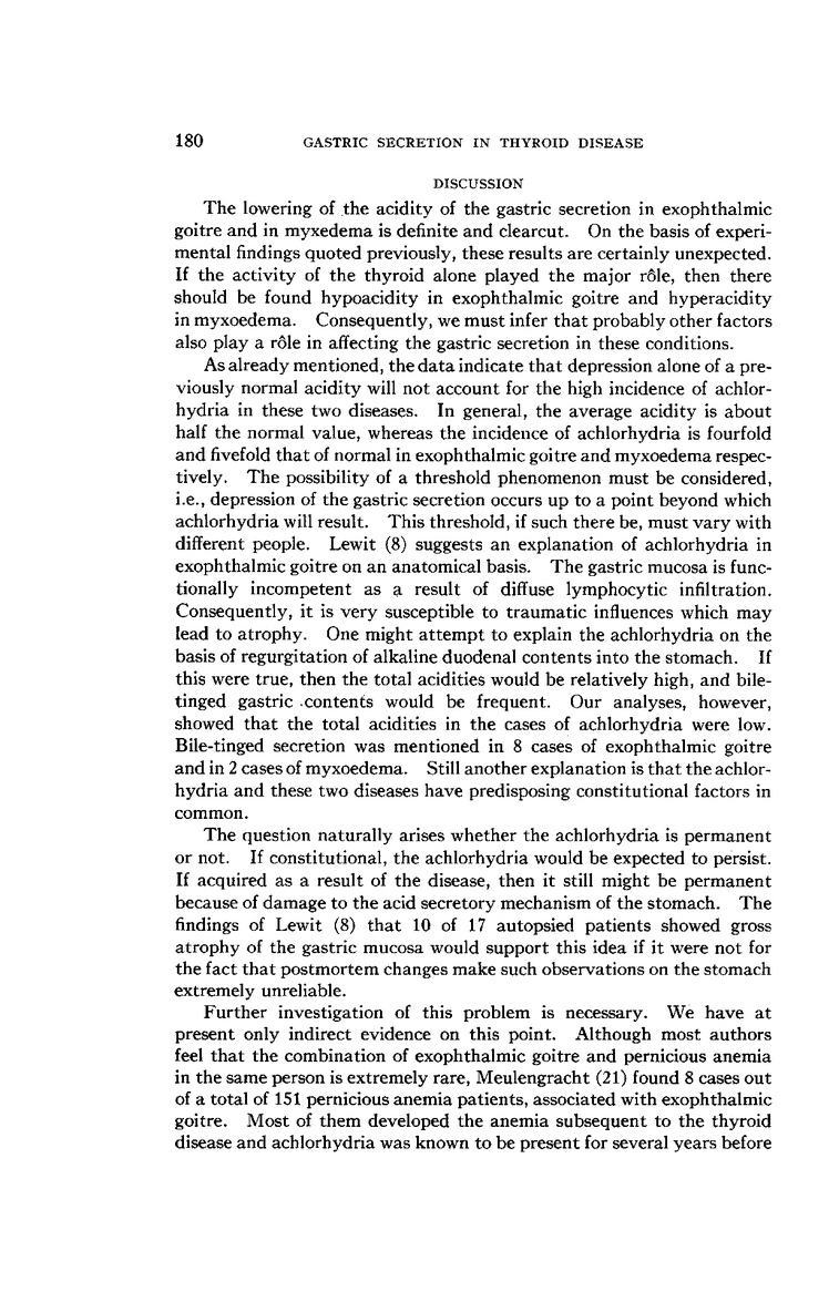 THE GASTRIC SECRETION IN EXOPHTHALMIC GOITRE AND MYXOEDEMA