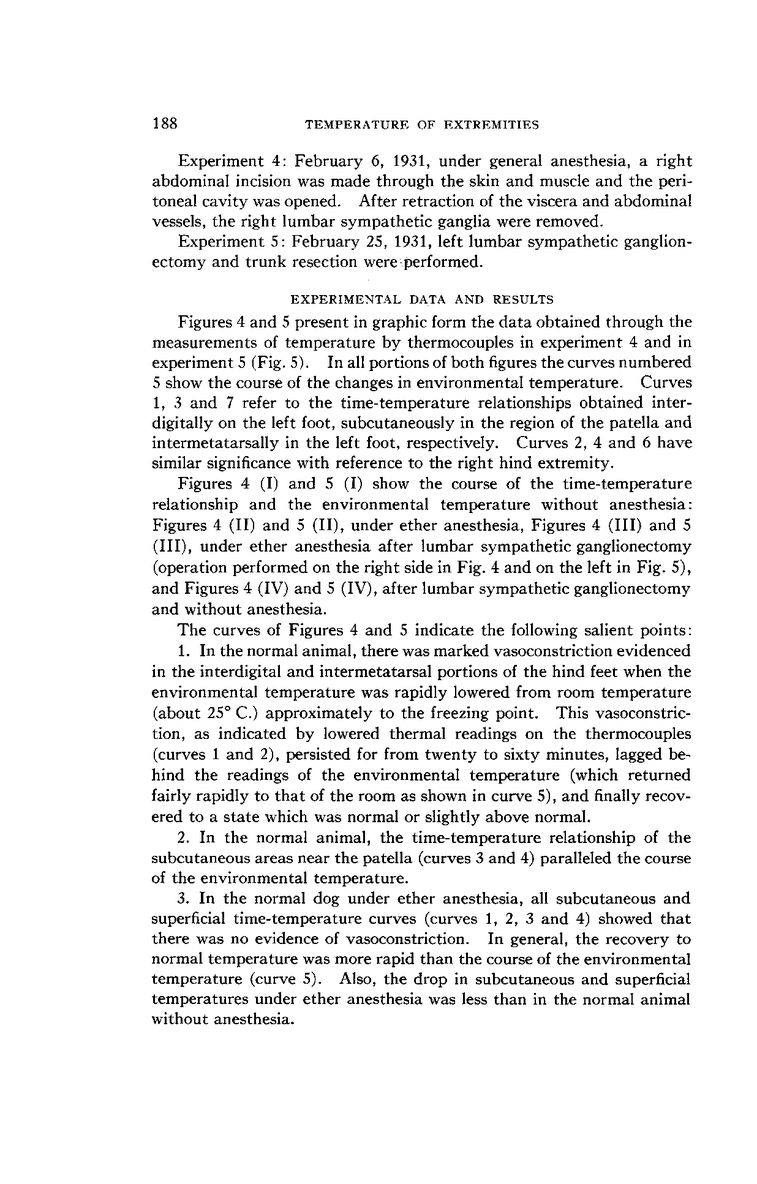 EFFECTS OF ENVIRONMENTAL TEMPERATURE, ANESTHESIA AND LUMBAR SYMPATHETIC GANGLIONECTOMY ON THE TEMPERATURES OF THE EXTREMITIES OF ANIMALS