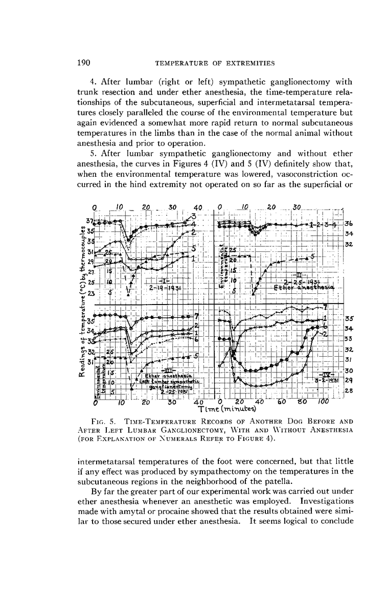 EFFECTS OF ENVIRONMENTAL TEMPERATURE, ANESTHESIA AND LUMBAR SYMPATHETIC GANGLIONECTOMY ON THE TEMPERATURES OF THE EXTREMITIES OF ANIMALS