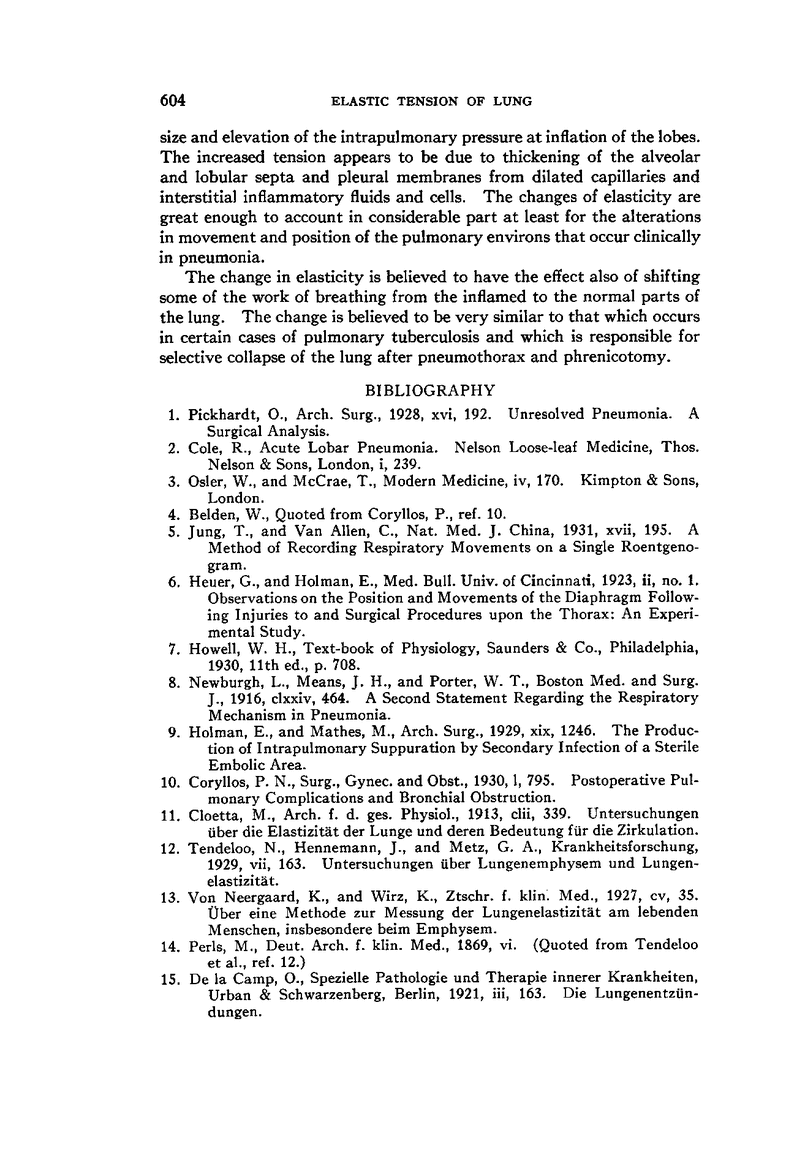INCREASED ELASTIC TENSION OF THE LUNG IN EXPERIMENTAL PNEUMONIA