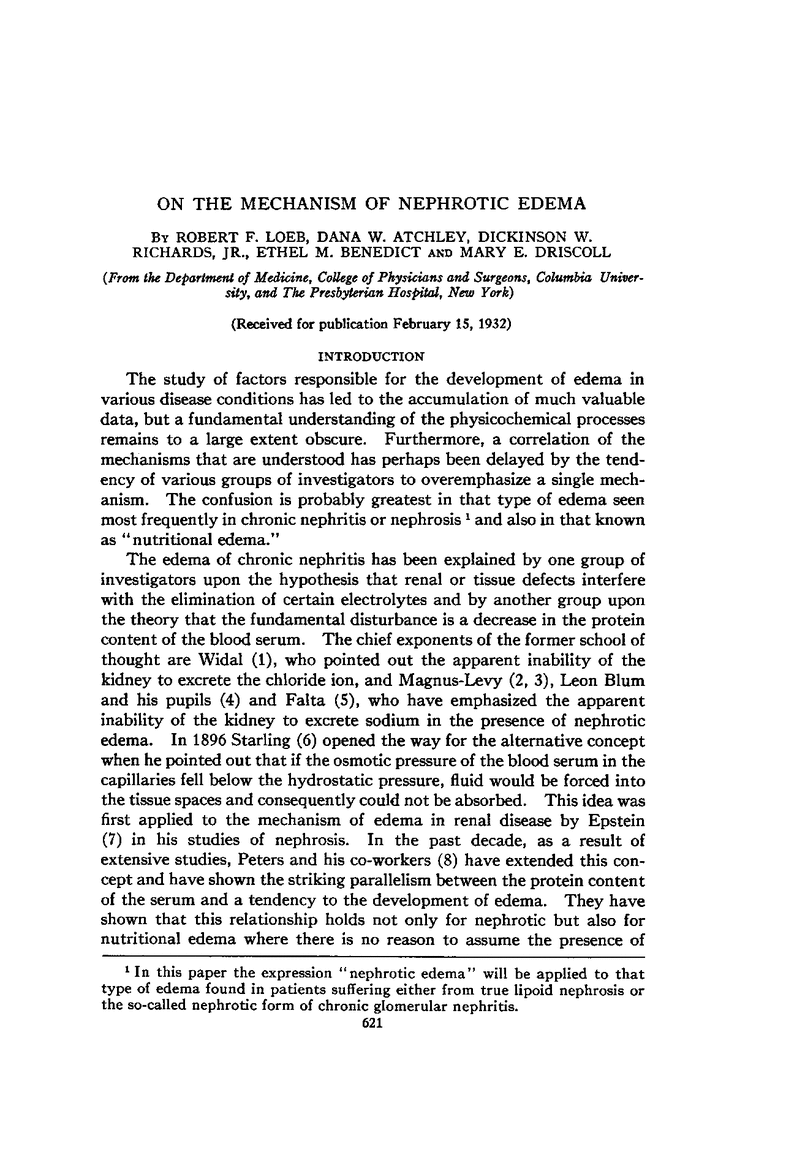 Robert F. Loeb, Dana W. Atchley, Dickinson W. Richards Jr., Ethel M. Benedict, Mary E. Driscoll