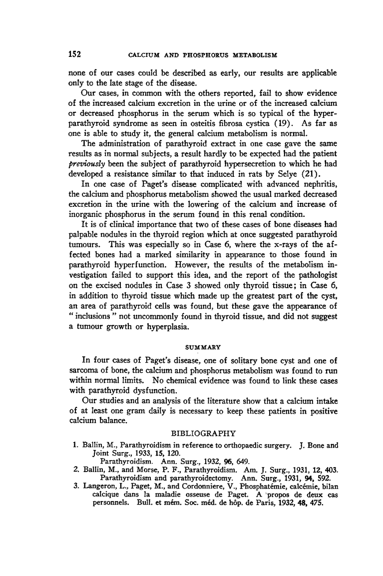 OBSERVATIONS UPON THE CALCIUM AND PHOSPHORUS METABOLISM IN CERTAIN DISEASES OF BONE