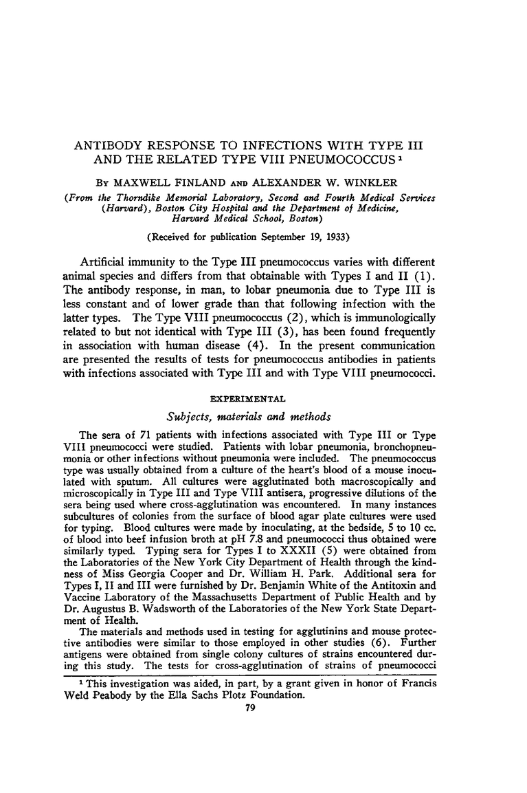 ANTIBODY RESPONSE TO INFECTIONS WITH TYPE III AND THE RELATED TYPE VIII PNEUMOCOCCUS