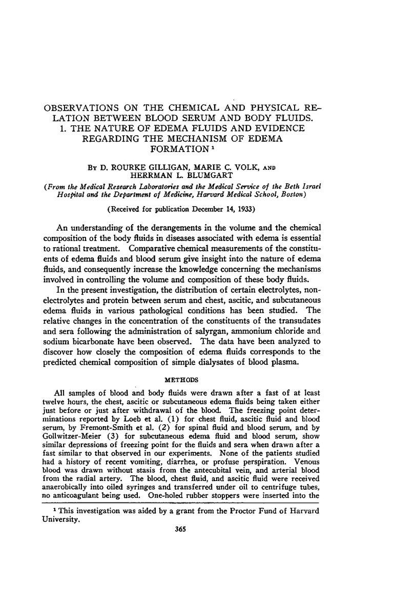 OBSERVATIONS ON THE CHEMICAL AND PHYSICAL RELATION BETWEEN BLOOD SERUM AND BODY FLUIDS. 1. THE NATURE OF EDEMA FLUIDS AND EVIDENCE REGARDING THE MECHANISM OF EDEMA FORMATION