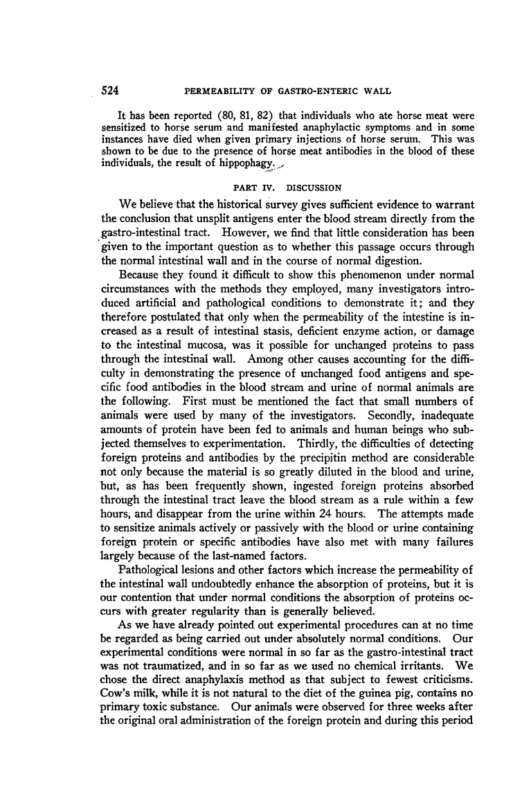 PASSAGE OF NATIVE PROTEINS THROUGH THE NORMAL GASTRO-INTESTINAL WALL