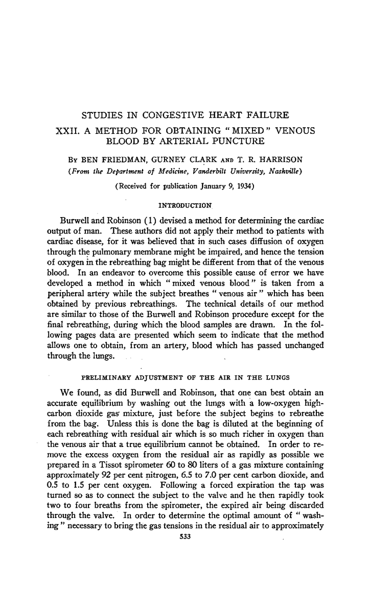 STUDIES IN CONGESTIVE HEART FAILURE XXII. A METHOD FOR OBTAINING “MIXED” VENOUS BLOOD BY ARTERIAL PUNCTURE