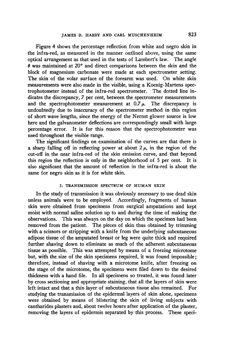 THE RADIATION OF HEAT FROM THE HUMAN BODY. IV. THE EMISSION, REFLECTION, AND TRANSMISSION OF INFRA-RED RADIATION BY THE HUMAN SKIN