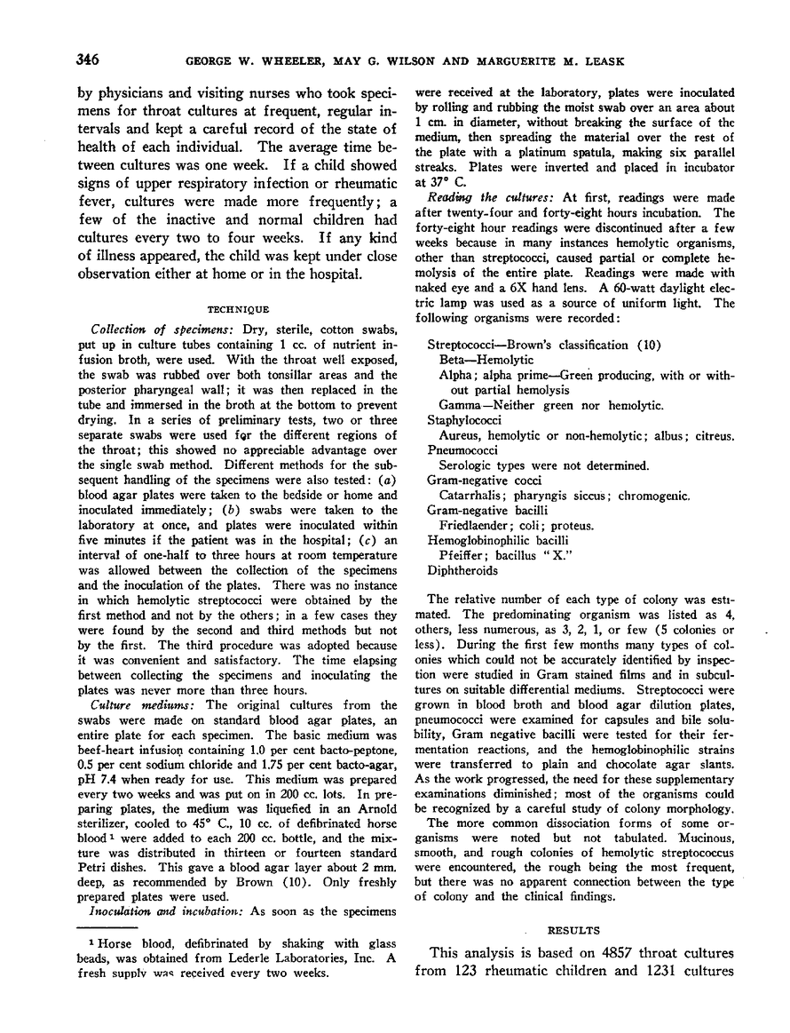 George W. Wheeler, May G. Wilson, Marguerite M. Leask