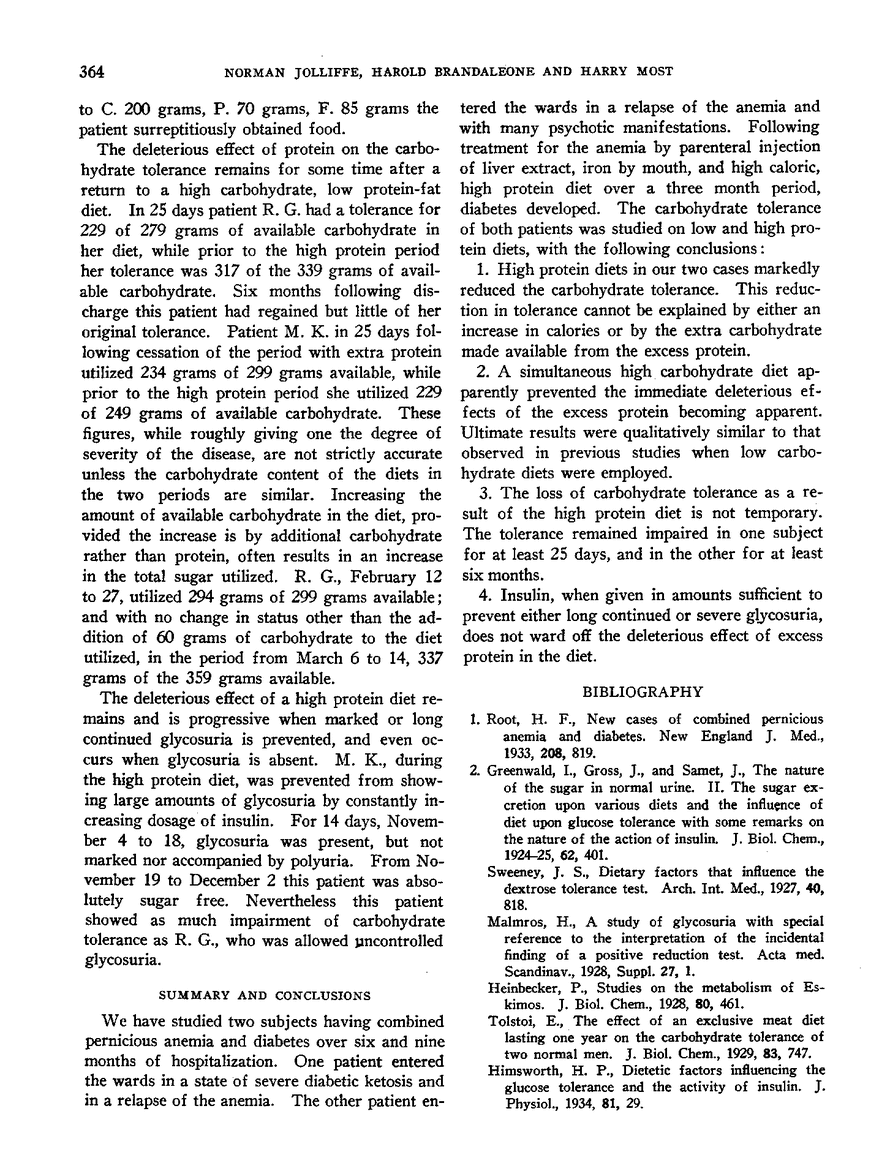 THE EFFECT OF PROTEIN ON THE CARBOHYDRATE TOLERANCE OF TWO CASES HAVING COMBINED DIABETES MELLITUS AND PERNICIOUS ANEMIA