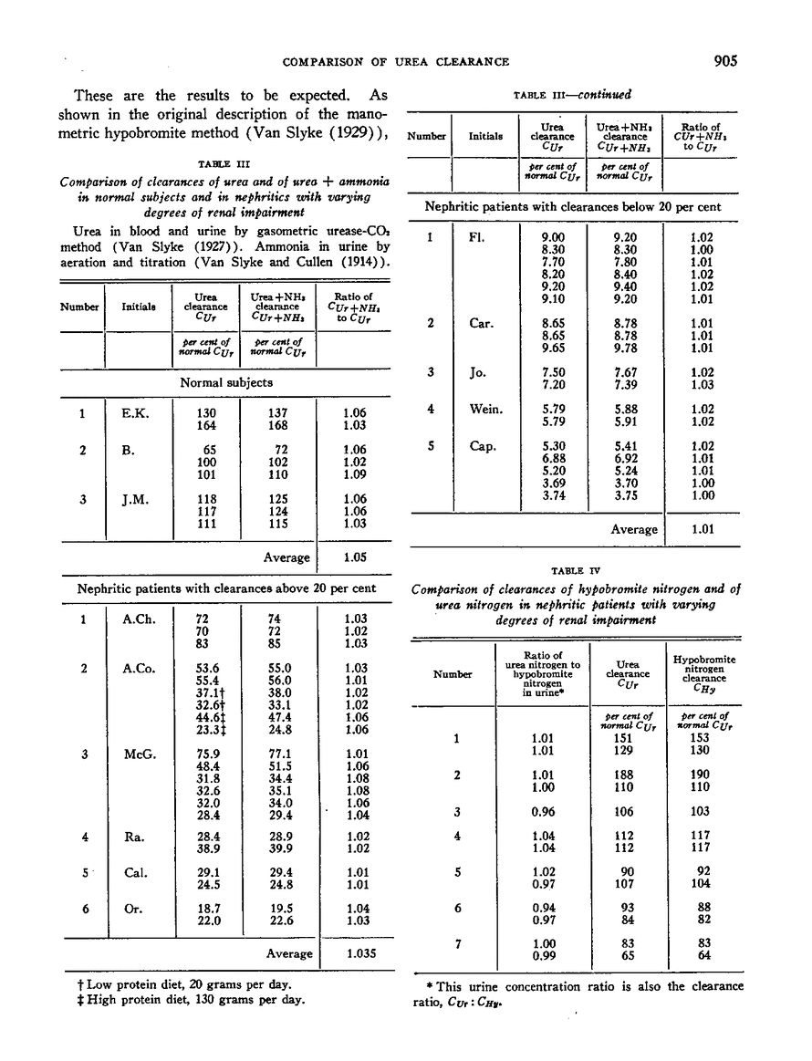 STUDIES OF UREA EXCRETION. IX. COMPARISON OF UREA CLEARANCES CALCULATED FROM THE EXCRETION OF UREA, OF UREA PLUS AMMONIA, AND OF NITROGEN DETERMINABLE BY HYPOBROMITE