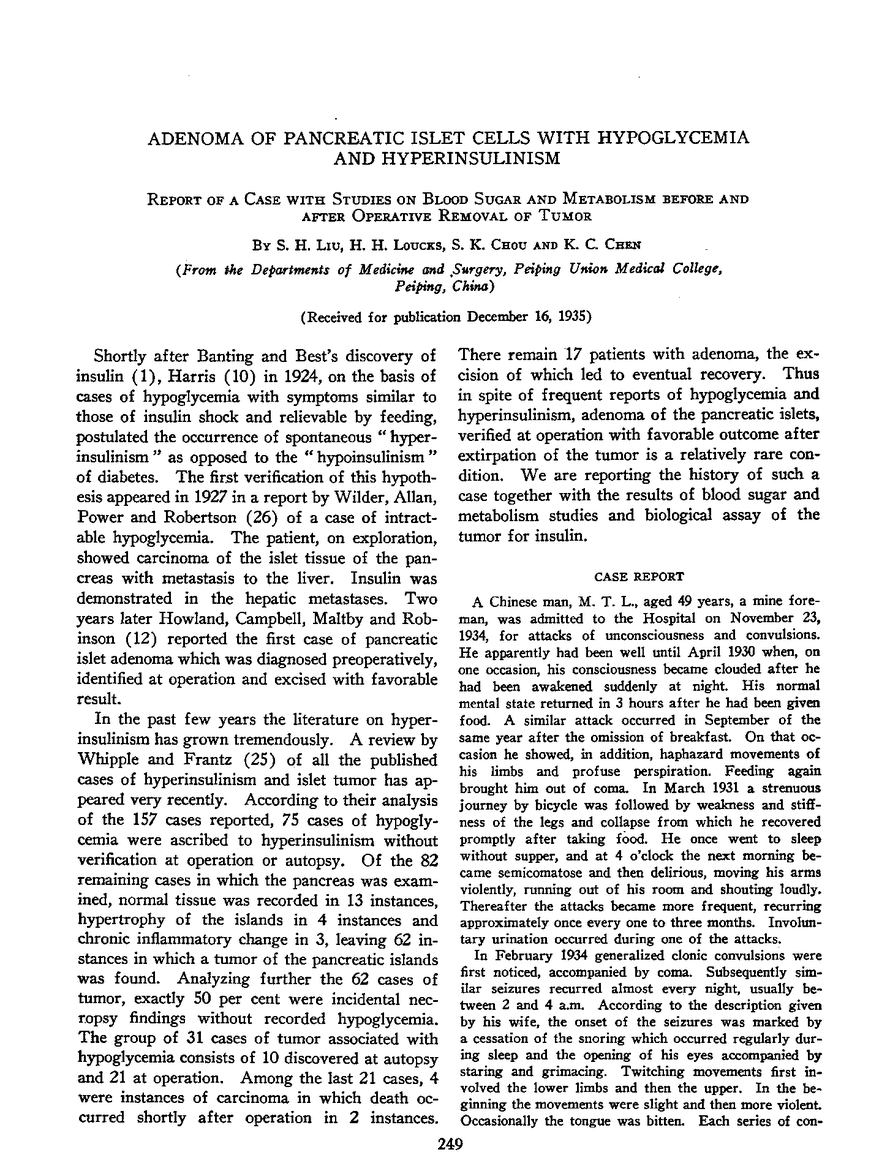 ADENOMA OF PANCREATIC ISLET CELLS WITH HYPOGLYCEMIA AND HYPERINSULINISM: