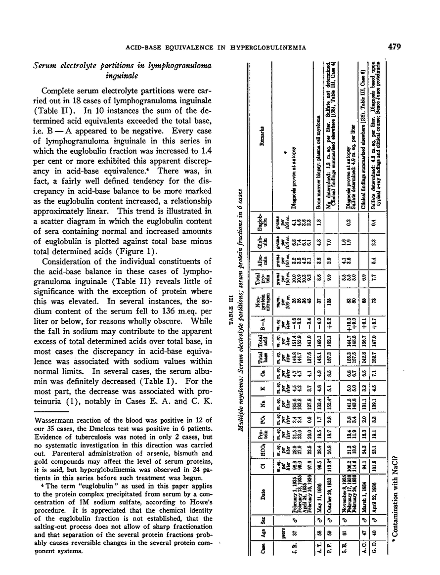 ACID-BASE EQUIVALENCE OF THE BLOOD IN DISEASES ASSOCIATED WITH HYPERGLOBULINEMIA; WITH SPECIAL REFERENCE TO LYMPHOGRANULOMA INGUINALE AND MULTIPLE MYELOMA