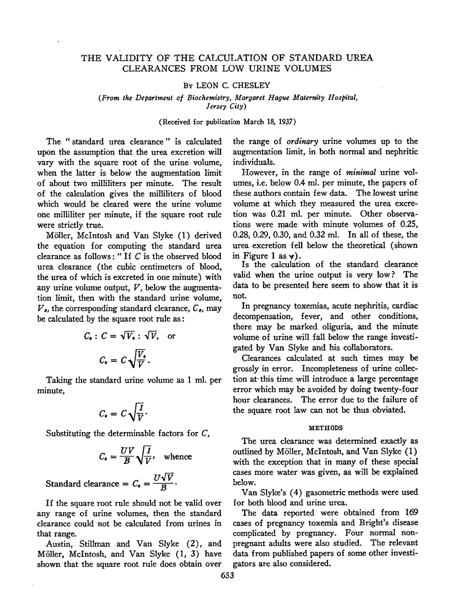 THE VALIDITY OF THE CALCULATION OF STANDARD UREA CLEARANCES FROM LOW URINE VOLUMES