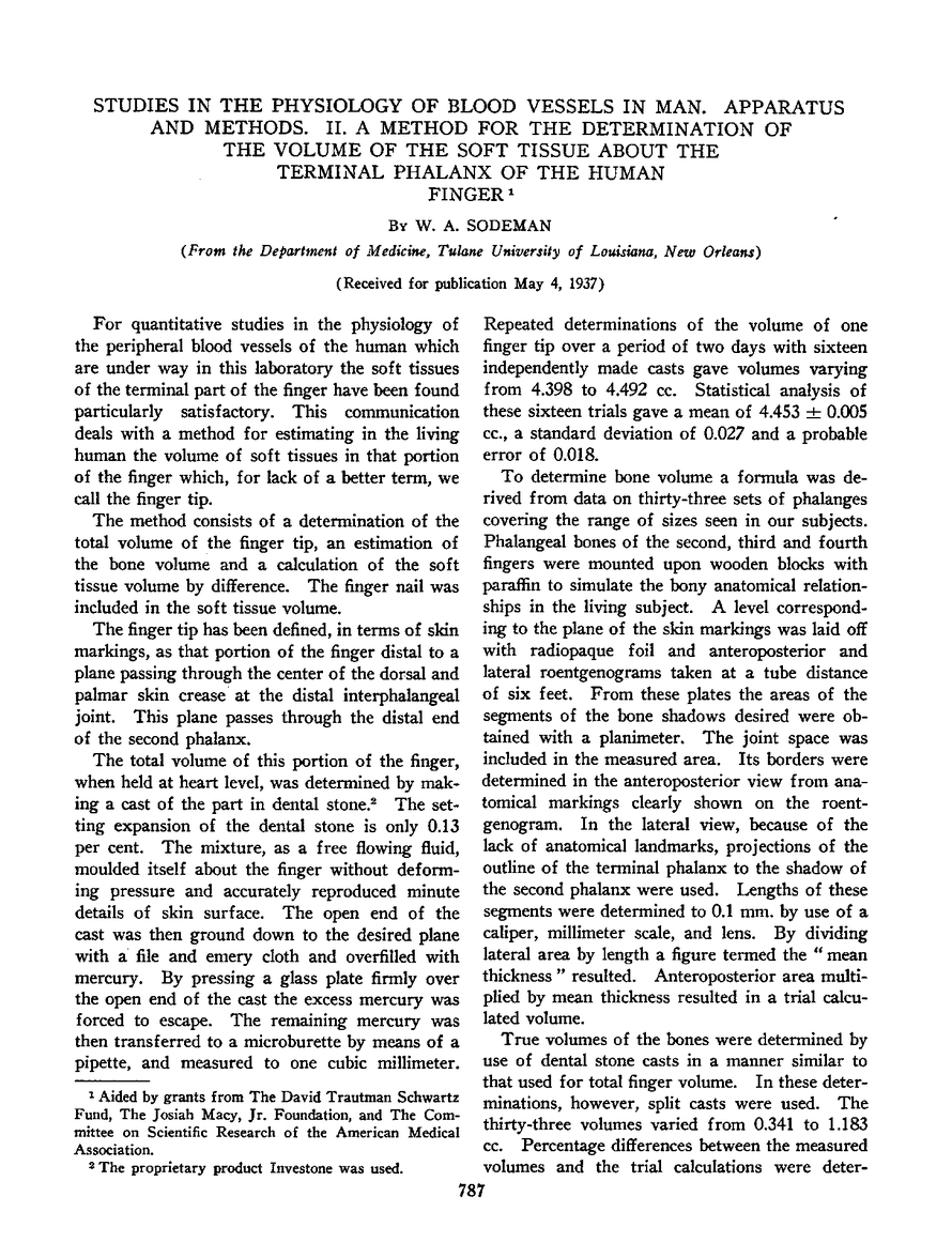 STUDIES IN THE PHYSIOLOGY OF BLOOD VESSELS IN MAN. APPARATUS AND METHODS. II. A METHOD FOR THE DETERMINATION OF THE VOLUME OF THE SOFT TISSUE ABOUT THE TERMINAL PHALANX OF THE HUMAN FINGER
