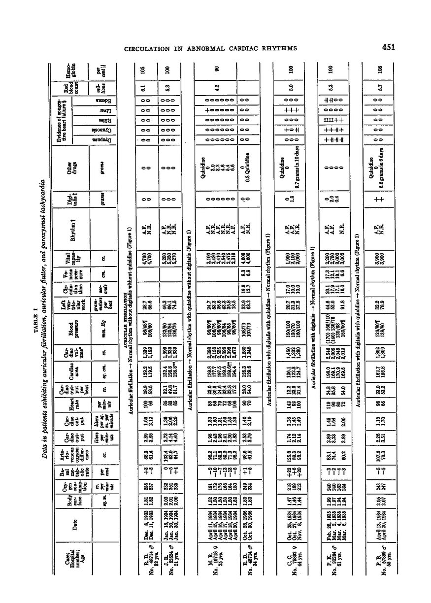 STUDIES OF THE CIRCULATION IN THE PRESENCE OF ABNORMAL CARDIAC RHYTHMS. OBSERVATIONS RELATING TO (PART I) RHYTHMS ASSOCIATED WITH RAPID VEN-TRICULAR RATE AND TO (PART II) RHYTHMS ASSOCIATED WITH SLOW VENTRICULAR RATE