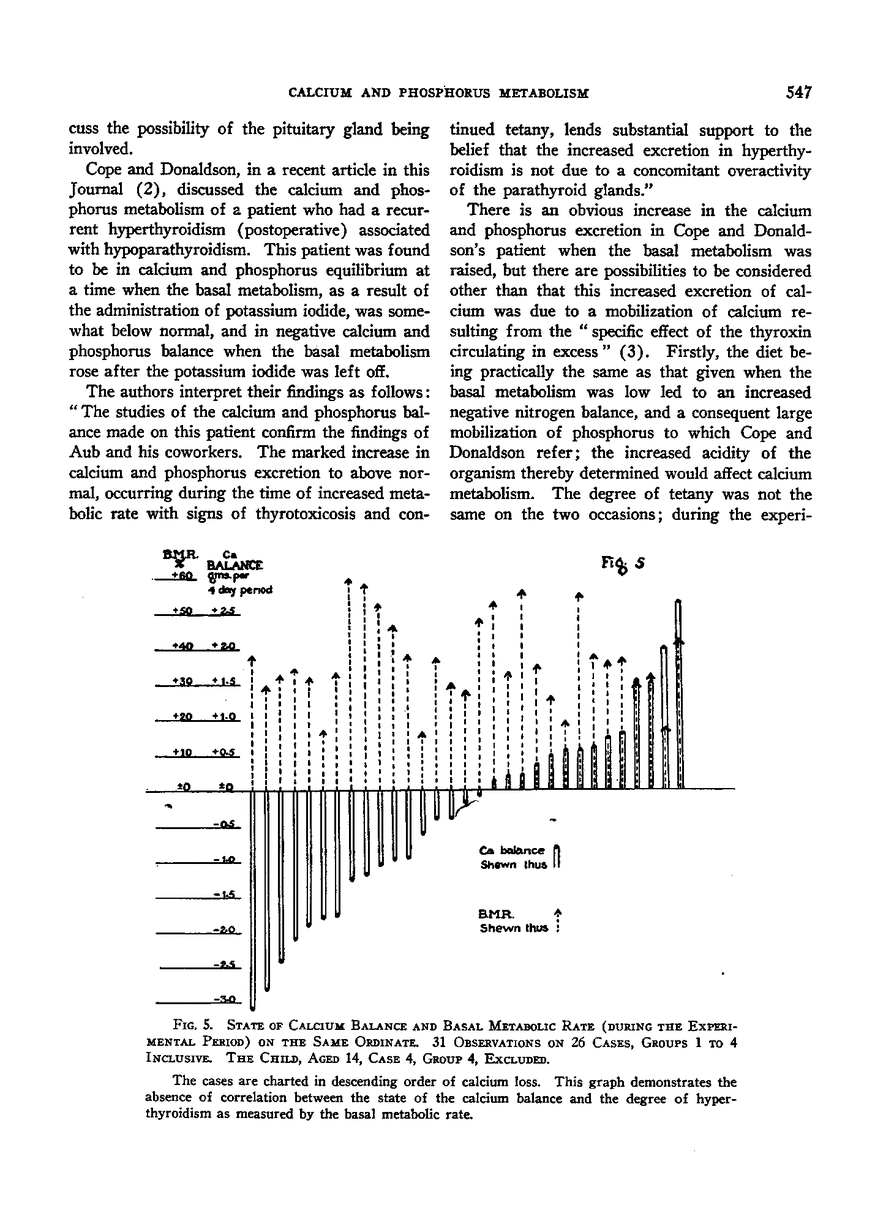 CALCIUM AND PHOSPHORUS METABOLISM IN DISEASES OF THE THYROPARATHYROID APPARATUS. II. CALCIUM AND PHOSPHORUS BALANCE (A) FOLLOWING THERAPEUTIC RADIATION OF THE HYPERPLASTIC THYROID GLAND, AND (B) IN HYPERTHYROIDIC PATIENTS TREATED WITH IODINE