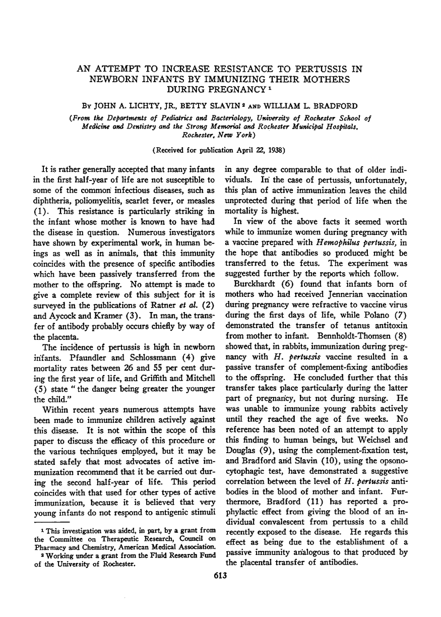 AN ATTEMPT TO INCREASE RESISTANCE TO PERTUSSIS IN NEWBORN INFANTS BY IMMUNIZING THEIR MOTHERS DURING PREGNANCY