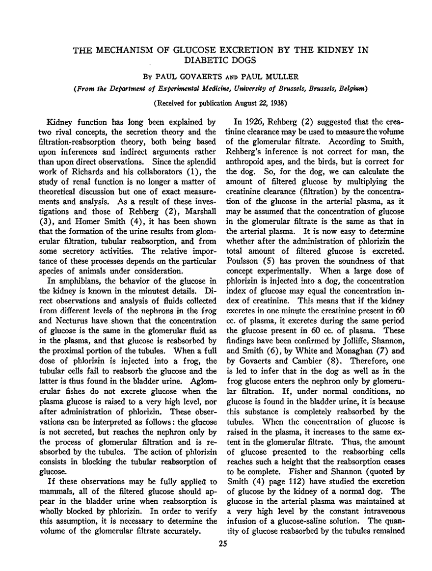 THE MECHANISM OF GLUCOSE EXCRETION BY THE KIDNEY IN DIABETIC DOGS