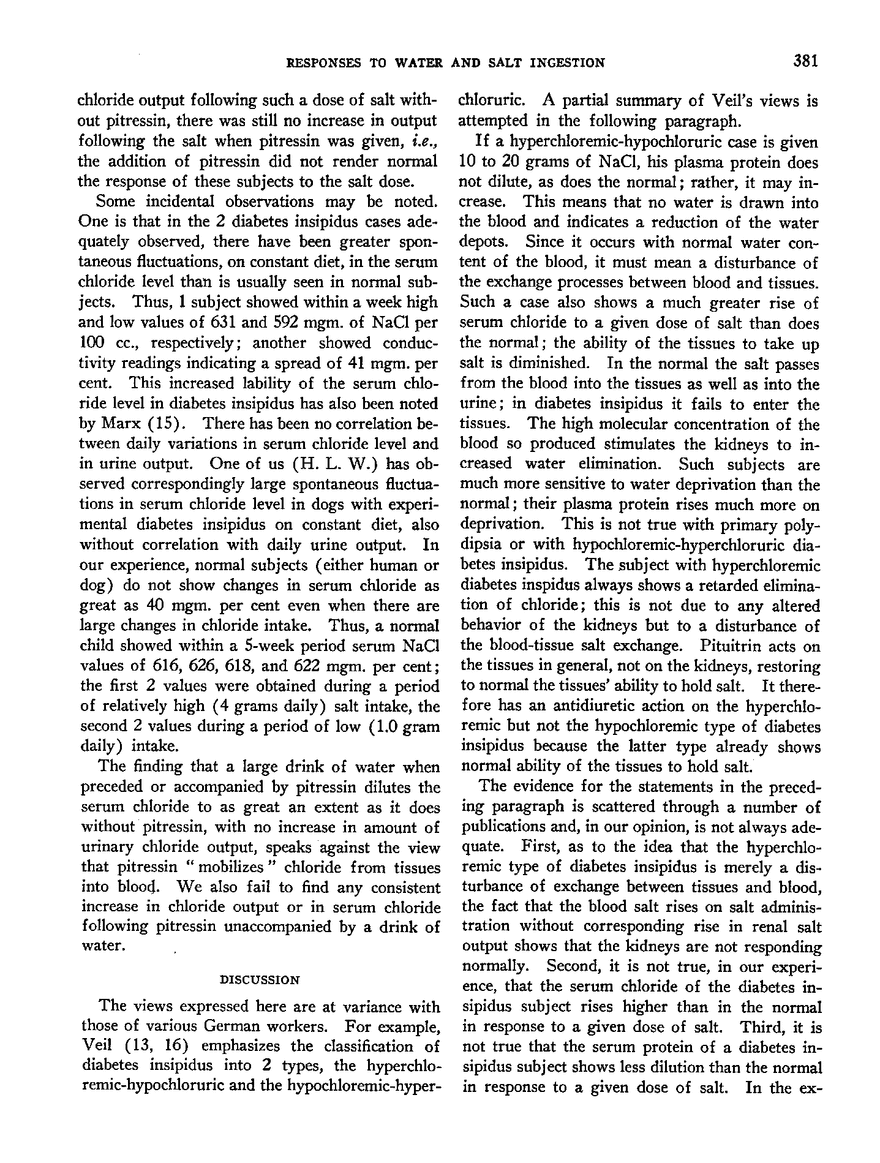 RESPONSES OF NORMAL SUBJECTS AND OF PATIENTS WITH DIABETES INSIPIDUS TO WATER AND SALT INGESTION