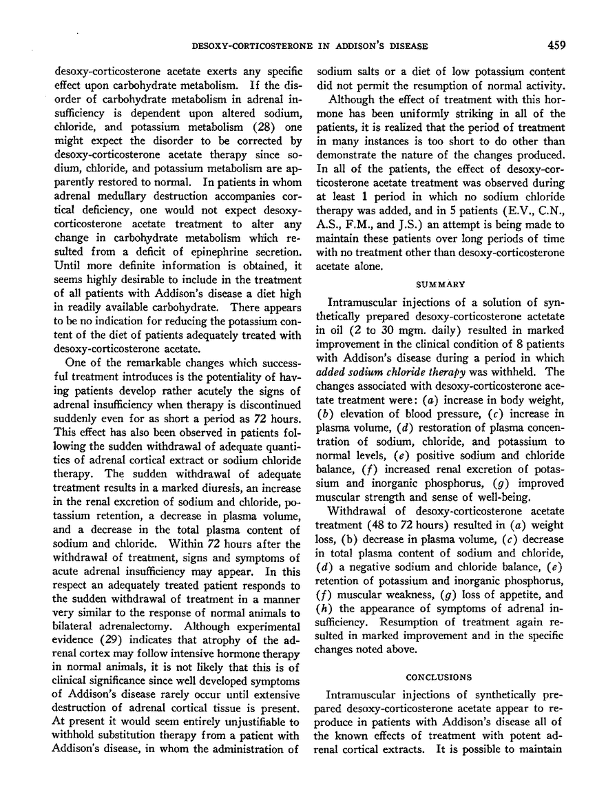 TREATMENT OF ADDISON'S DISEASE WITH DESOXY-CORTICOSTERONE ACETATE, A SYNTHETIC ADRENAL CORTICAL HORMONE (PRELIMINARY REPORT)