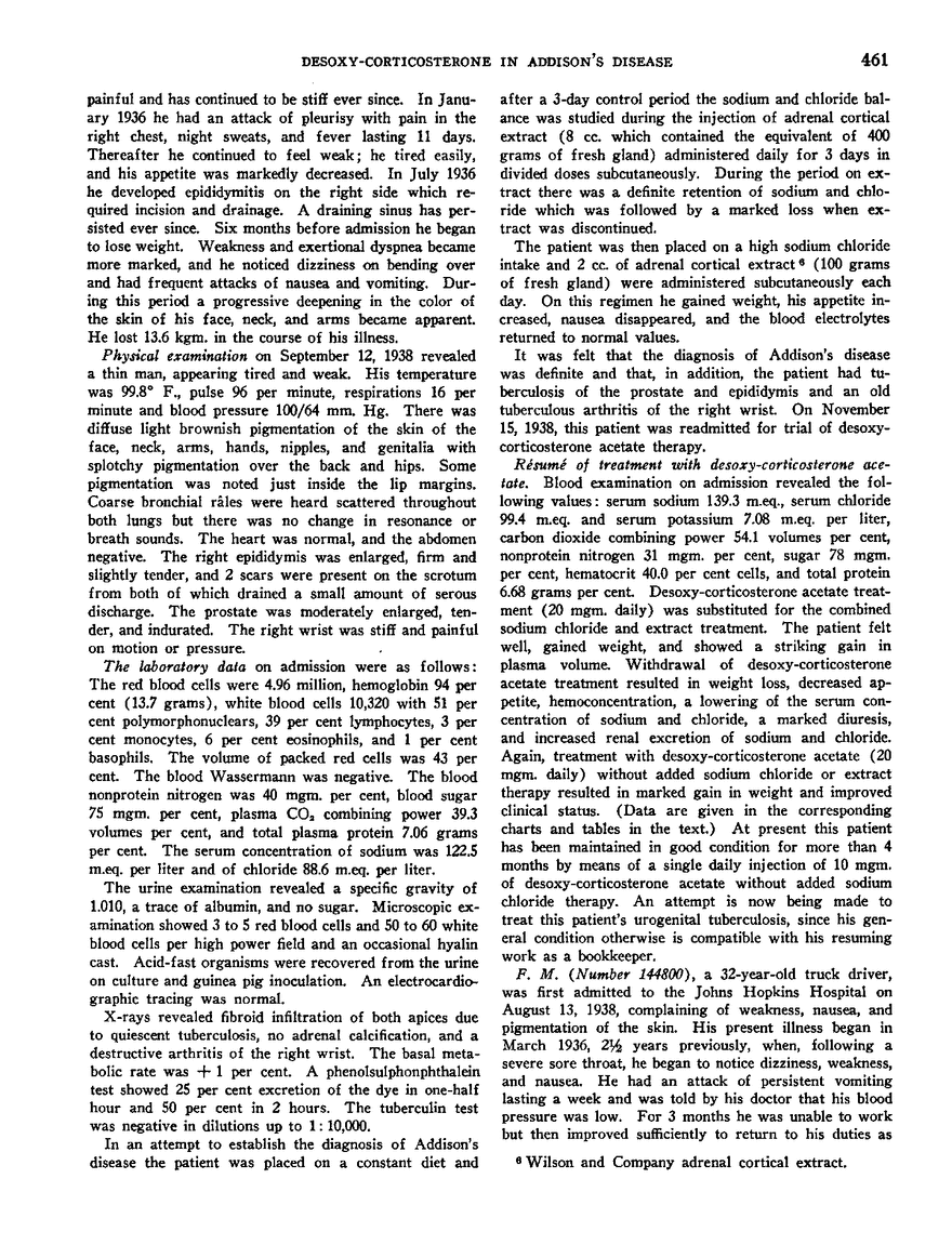 TREATMENT OF ADDISON'S DISEASE WITH DESOXY-CORTICOSTERONE ACETATE, A SYNTHETIC ADRENAL CORTICAL HORMONE (PRELIMINARY REPORT)